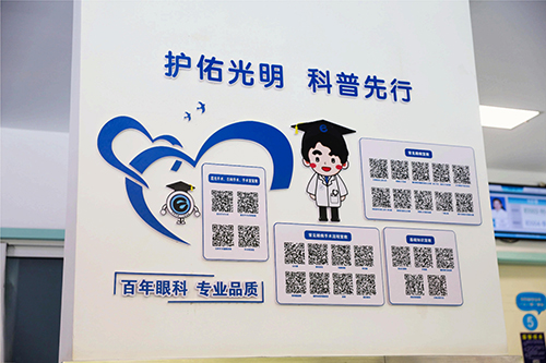 “护佑光明”健康教育项目是医院护理部与门诊部在院健康教育委员会指导下推出的品牌健教项目,该项目围绕眼科疾病全流程宣教内容,设计了语音版、漫画版、微信版、视频版、图文版、PPT版和360全景视频版等多种主题形式,以二维码的呈现方式,让患者全方位、多视角地掌握健康知识。此次医院在原来推广方式的基础上,又在眼科门诊和儿童眼病门诊候诊区打造了“护佑光明,科普先行”健康科普文化墙,精选“护佑光明”项目中具有代表性的科普知识内容,融合为常见眼病宣教、基础知识、常见眼病手术流程、近视防治知识小课堂等多个板块,以二维码的形式进行集中展示,让患者在候诊期间可以随时自主选择观看。