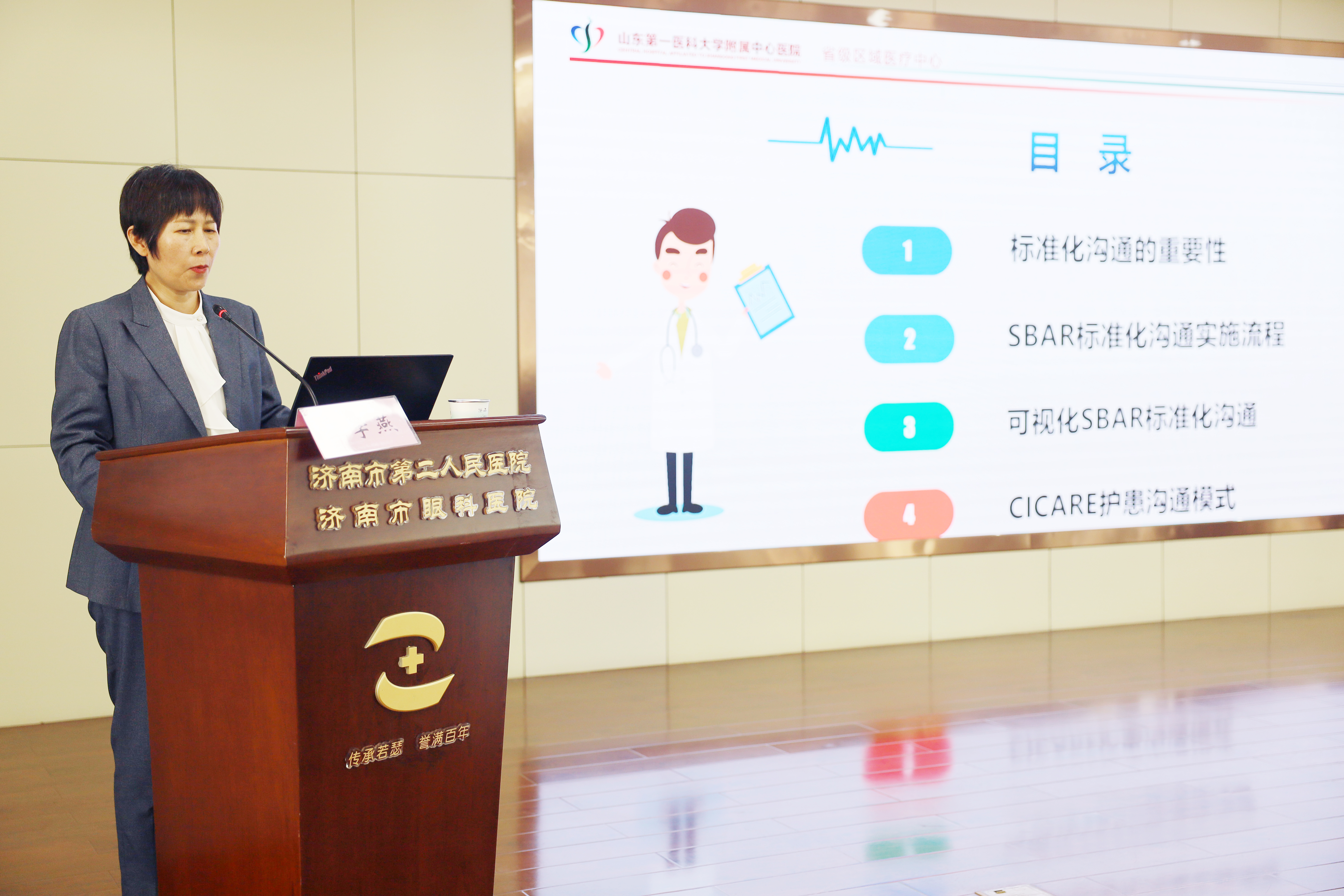 山东第一医科大学附属中心医院原副院长、济南护理学会理事长肖凌凤出席会议并讲话