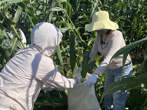 党员们在田里掰玉米
