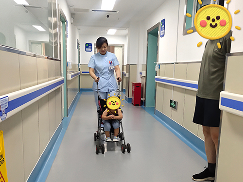 护士带着乐乐熟悉环境