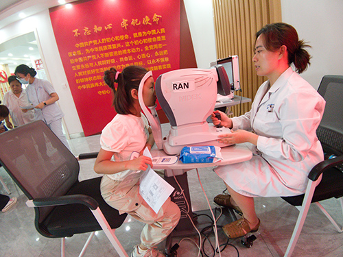 活动当天,义诊团队早早地来到社区,布置好了眼科检查区、中医诊疗体验区、咨询区等功能区域。居民们在志愿者的引导下,有序地排队接受检查。该社区内的残疾人、老年人和托管班小学生等群体人数较多,由于种种原因,往往难以及时获得专业的眼科检查服务。因此,医院特别为这些人群设置了优先检查通道,并特别安排了经验丰富的眼外伤科、眼底病科、中医眼科的专家进行一对一的细致检查。在检查过程中,专家们不仅关注居民的视力状况,还耐心询问他们的生活习惯、家族病史等,以便为居民提供更加个性化的健康指导和建议。对于发现的眼部疾患,义诊团队及时与居民沟通,并为他们建立了眼健康档案,以便后续提供持续的治疗和跟踪服务。
