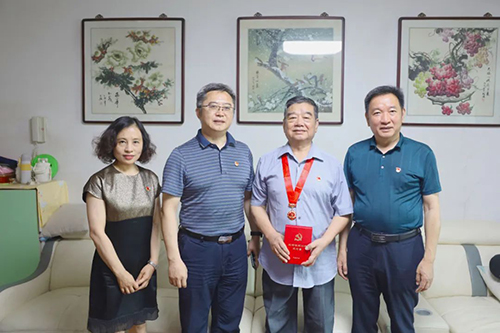 党委书记东光国、专职党委副书记曹传洲走访慰问了老党员代表并颁发纪念章,医院组织人事科、离退休职工管理科负责同志陪同参加走访活动。