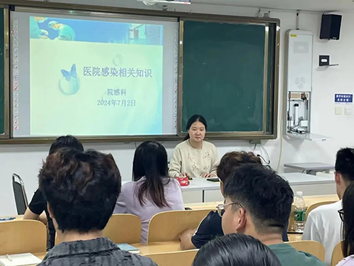 医务科、院感办、安保科、教育教学科、宣传科、眼六科等科室参加了培训授课。医务科为同学们培训了依法执业、行风建设相关法律法规以及医院18项核心制度等重要内容,还为同学们进行了心肺复苏的常规培训。院感办为同学们讲解了手卫生、职业暴露等临床院感知识。安保科为同学们系统培训了消防安全管理制度、易燃易爆危险品和场所防火防爆制度、群体性突发事件应急预案等,并组织学生在户外进行了灭火器的实地操作。宣传科针对医院舆情的预防与处理进行了介绍。眼六科护士长结合临床实际工作,为同学们带来了“提升临床服务温度,加强患者就医体验”的精彩授课。教育教学科带领同学们观看了医院百年院庆宣传片,培训了实习生请销假管理、宿舍管理规定等相关制度规定,指导同学们科学进行学习和职业规划,并针对工作纪律、学习态度、学生活动等提出要求和建议。