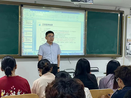 在教学楼301教室组织新报到的全体实习学生进行了为期两天的岗前培训。本次新生来自山东第一医科大学、山东第二医科大学、山东医学高等专科学校等医学院校的眼视光学、眼视光医学、医学检验技术、医学影像技术、药学、预防医学、针灸推拿等临床专业,共计42人。