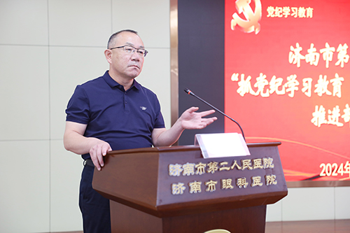会上,党委书记东光国结合医院实际,重点围绕“学纪、知纪、明纪、守纪”四个方面作出要求:一是以党纪学习教育为契机,扛牢政治责任,强化组织保障,推进党纪学习教育促医院发展清正廉洁走在前;二是牢牢把握“学纪、知纪、明纪、守纪”学习重点,进一步强化党纪意识,严守纪律红线,为推进医院高质量发展夯实纪律保障;三是突出党建与业务融合发展,以“创新品牌”建设为抓手,为全力推进百年眼科新发展凝聚新合力。