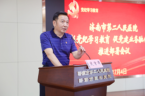 组织召开“抓党纪学习教育 促党建业务融合发展”推进部署会议,医院领导班子、中层干部、护士长、全体党员、离退休党员代表参会,专职党委副书记曹传洲主持会议。