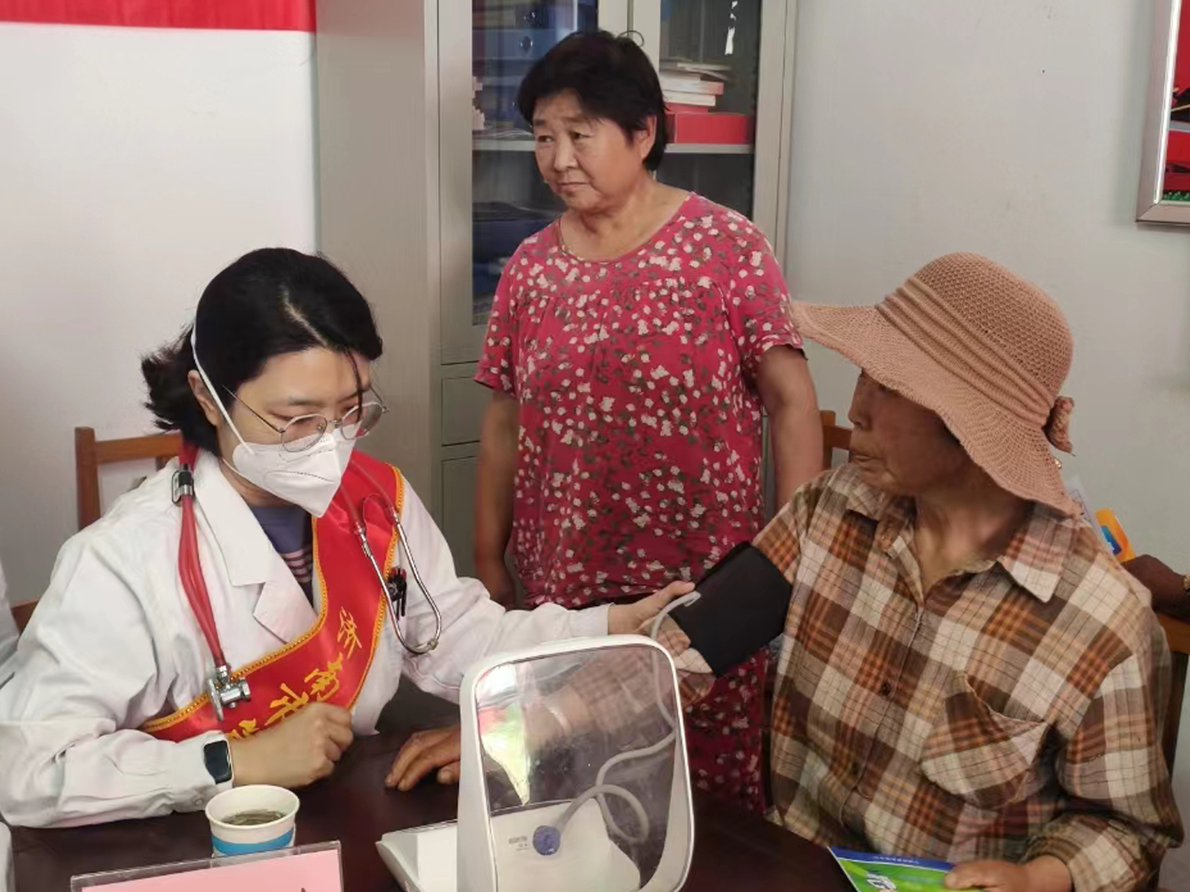 志愿者为村民测血压