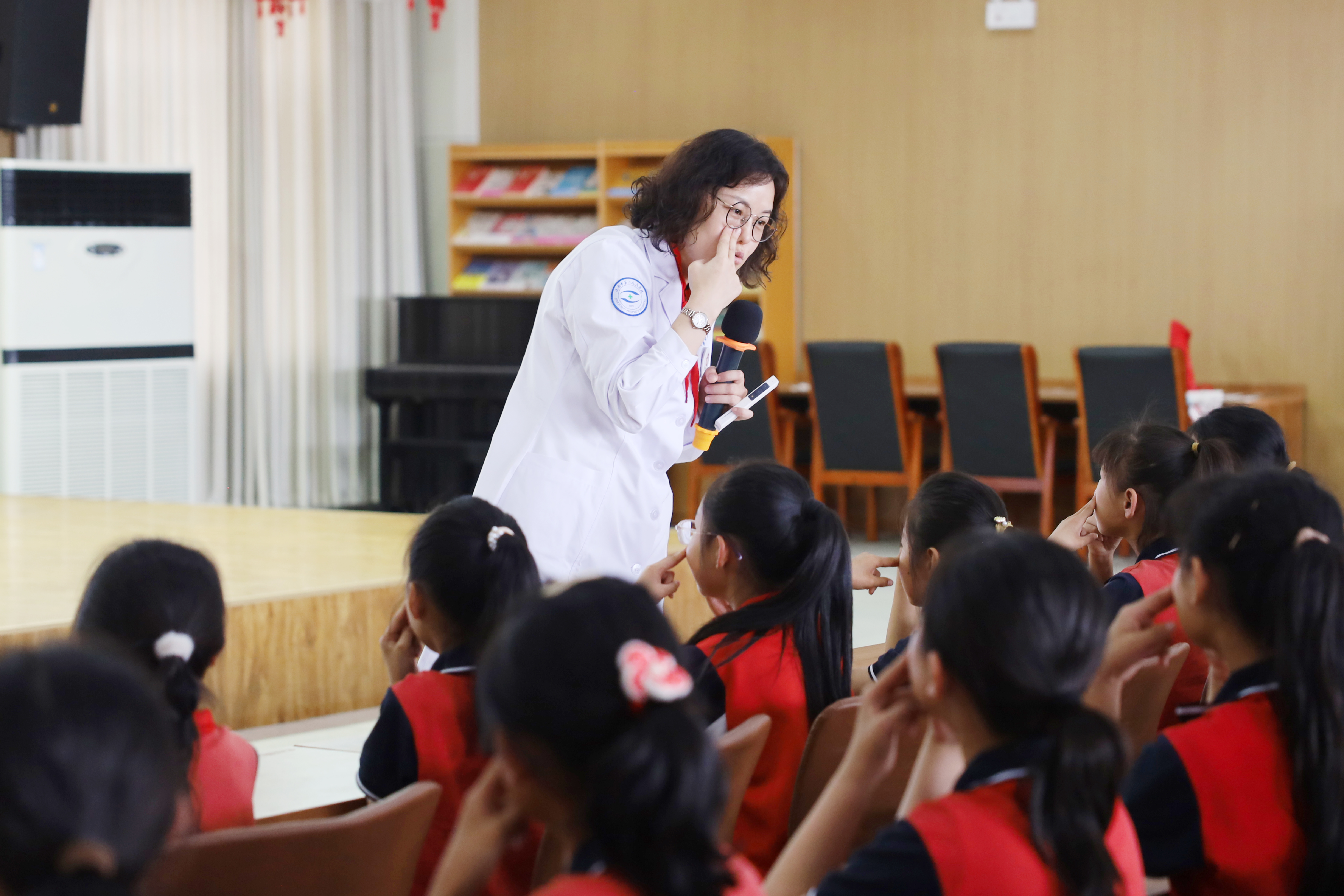 座谈会上,镇党委副书记窦晓宾对市二院高度重视乡村振兴工作,在百姓健康、爱心助学、村容建设等方面给予的支持表示感谢。市二院党委副书记曹传洲表示医院会一如既往地大力支持第一书记开展帮扶工作,助力和美乡村建设,共创乡村振兴美好未来。会后,在商河县龙桑寺镇中心小学操场上举行了捐赠仪式,市二院工会、妇委会相关负责同志将全院职工爱心捐赠的书籍及玩具分发给学生们。仪式结束后,市二院中医眼科副主任,副主任医师宿艳为龙桑寺镇中心小学三年级的学生们带来了一场生动的近视防控科普讲座。宿主任从书写姿势、用眼习惯、饮食习惯等方面,深入浅出的讲解了如何养成良好用眼习惯及近视防控的方法,系统地教授了眼保健操的重点穴位及主要手法,并进行现场示范。
