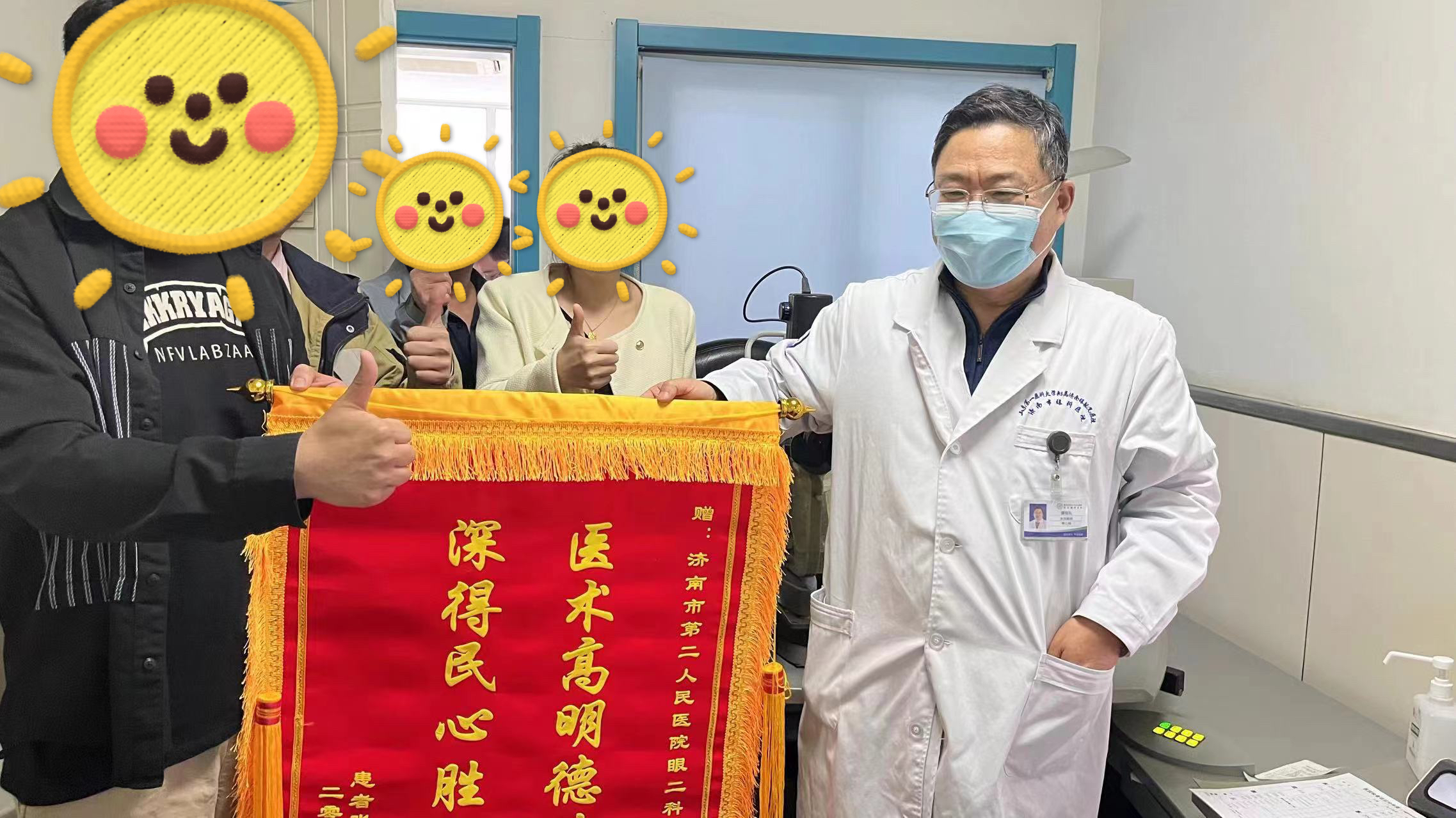本文开头温馨的一幕在病房上演,出院时,张阿姨和家属为医务人员送来锦旗,她激动地说“在我住院的这些日子,无论专家还是护士每次查房时对我都像家人一样,一开始就应该选择咱们济南市二院,果然没有让我失望!”(眼二科 李文静 孟德铃 郭兆瑞)