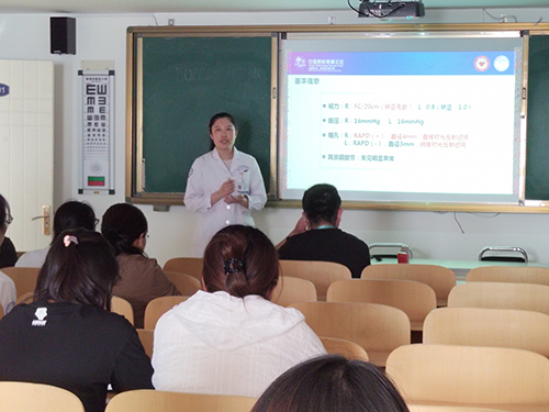 魏丽医师为大家带来了病例汇报《挥之不去的“阴霾”》,汇报了临床诊疗中的一例罕见视神经炎病例。魏医师曾以该病例汇报参加了第八届中国眼科教育论坛演讲大赛,晋级全国决赛。她的演讲病例新颖,分析逻辑缜密,表达流畅清晰,为青年医师走向全国讲台树立了榜样。