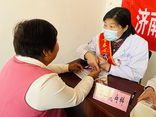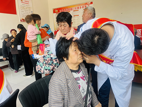 活动现场,前来咨询、就诊的村民络绎不绝,青年志愿者们为社区居民提供免费的血压测量、视力检查等服务。内科副主任医师张丽凭借自身丰富的临床经验有针对性地为村民提出合理的诊疗建议,认真解答村民们关于常见病、多发病的预防诊治问题,详细讲解高血压、糖尿病、冠心病等常见慢性疾病和并发症的危害,叮嘱患有基础疾病的老年人要合理膳食、均衡营养、适度锻炼、定期体检,引导村民养成健康的生活习惯。青年眼科医师黄超耐心热情地了解患有眼疾的村民们患病史,为他们进行专业的裂隙灯、眼底镜等眼科检查,详细解答每一位村民的疑问。来自中医眼科的青年志愿者王萌现场为村民把脉问诊,并提供中医特色适宜技术耳穴压豆,为村民传播中医健康知识。