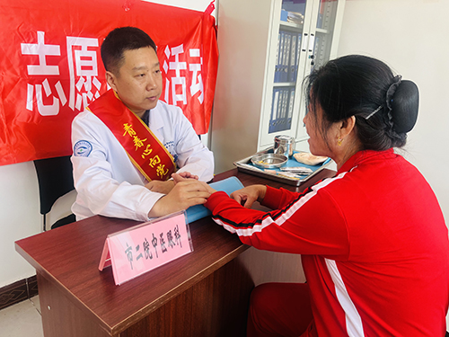 青年志愿者王萌为社区居民把脉