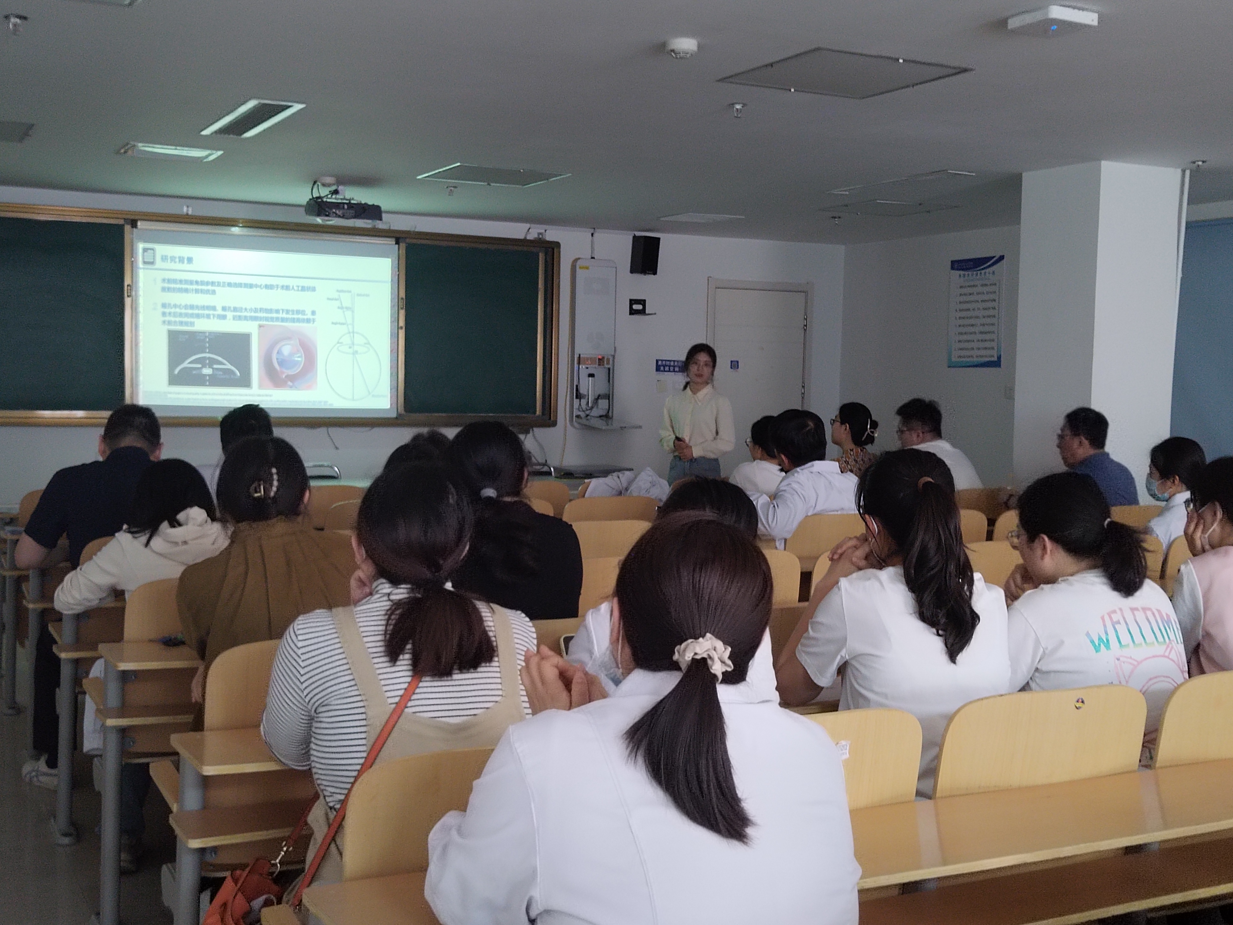 刘明明医师作题为《白内障超声乳化吸除术前后不同中心角膜区域形态变化的研究》的讲座。她对白内障手术前后以角膜顶点和以瞳孔中心为中心的不同直径区域内各项角膜屈光力参数进行对比研究,为植入功能型人工晶状体患者术后视觉质量的提高及功能型人工晶状体的选择提供参考。