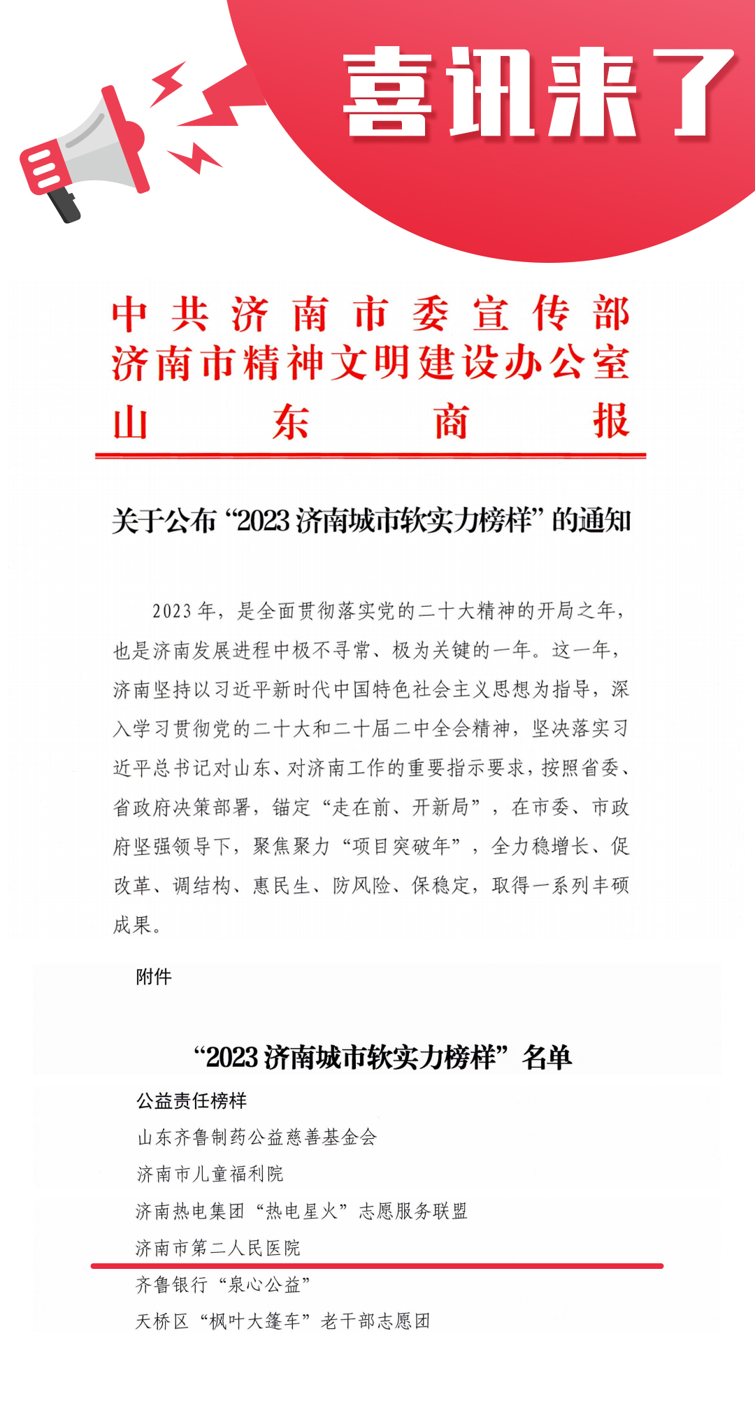 获评“2023 济南城市软实力榜样公益责任榜样”荣誉称号。