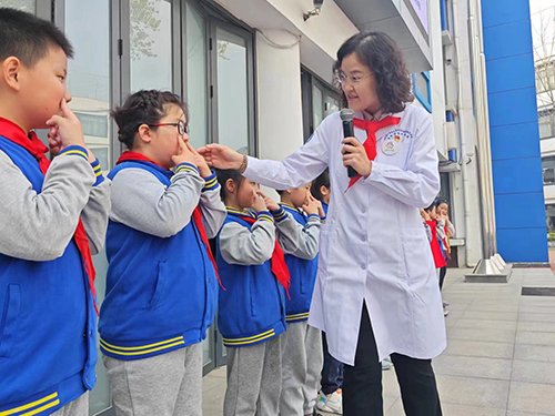 山东省最美家庭获得者、山东省巾帼文明岗负责人,市二院中医眼科副主任宿艳紧扣儿童青少年近视防控的关键环节,围绕近视的成因、近视的危害、近视的预防等方面向全校师生做了深入浅出的讲解。她提醒在场师生们,随着小学生年级的增加近视患病率呈明显上升趋势。并指出,除保持正确的读写姿势外,要严格控制电子产品的使用时间,多进行一些户外运动,放松身心的同时,也让眼睛得到了充足的休息。宿艳主任还现场教授学生们做眼保健操的作用以及方法技巧,并督促同学们要养成每天坚持做眼保健操的好习惯,谨防近视的发生。