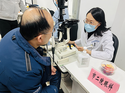健康体检开始后,在市二院青年志愿者们的引导下,中移在线服务有限公司职工有序排队登记、候检。此次体检除提供了视力、裂隙灯、眼底镜等专业眼科疾病检查及血压测量外,还为职工们送去了内科问诊、中医耳穴压豆等特色诊疗服务,得到了职工的欢迎。
