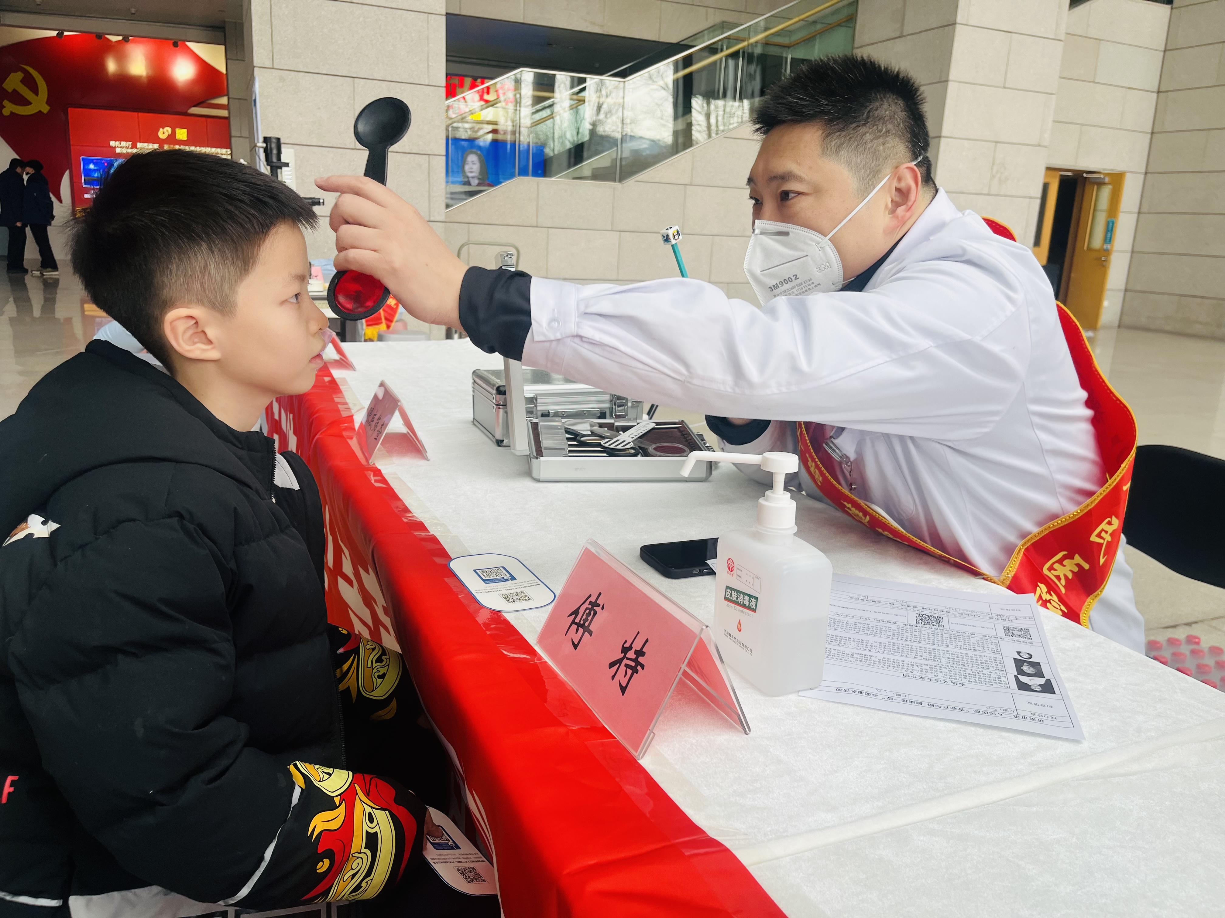 强降雪天气不期而至,市二院志愿者们前一天做足前期筹备工作,对义诊设备及义诊车辆进行多次检查,确保活动当天义诊顺利开展。早上八点,志愿者们就到达了山东广播电视台一楼大厅,布置好场地后,已有前来检查的职工排起了长队。医务人员提供了视力检查、验光检查、裂隙灯检查、眼底检查、中医脉诊等项目。“今天知道市二院的专家们来送健康,即使下着雪我也把孩子带来了,想给孩子做个视力检查,看着在医院检查用的设备都带来了,真是太感谢太方便了,我们办公室跟我一样带孩子来的可不少呢。”寒假结束前,很多职工也带着孩子来到义诊现场。