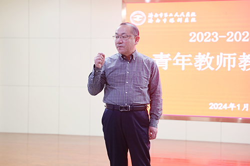 在门诊病房楼七楼会议室成功举办2023—2024学年青年教师教学比赛,14位来自全院临床科室的选手参加了比赛,市二院院长刘军、副院长王旭出席活动。