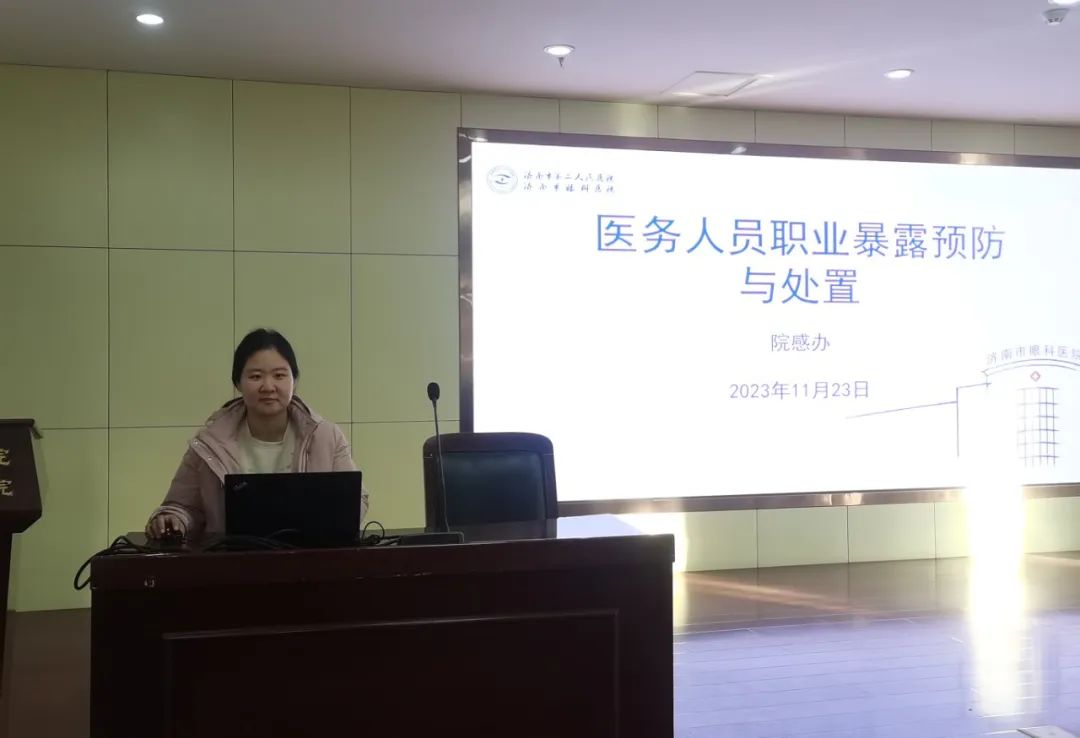本次讲座由来自医院感染管理办公室的医务人员担任主讲。首先,院感办医师高琳琳进行了题为《医务人员职业暴露预防与处置》的讲座,详细讲解了关于职业暴露的预防与处理措施,特别着重介绍了暴露后局部应急处理、报告流程。随后,院感办副主任杜敏作了题为《医院感染暴发的应急处置》的讲座,通过生动的案例警醒参培人员一定要重视院感的预防,详细地讲解了院感暴发应急处理的流程,并向与会人员介绍了应急处置演练计划的有关内容。随后参会人员进行了答题考核。