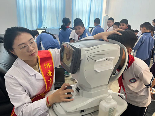 培训结束后,初宪华主任带领志愿服务队为400余名学生开展了基础眼病筛查,为每个学生建立了眼健康档案,记录他们的视力状况、屈光度等信息,以便对他们进行长期的跟踪和关注。参与此次活动的孩子们高兴地说,他们学到了很多关于视力保健的知识,包括如何正确使用眼睛、保护眼睛以及如何正确做眼保健操等。他们会将这些知识应用到日常生活中,努力养成良好的用眼习惯。