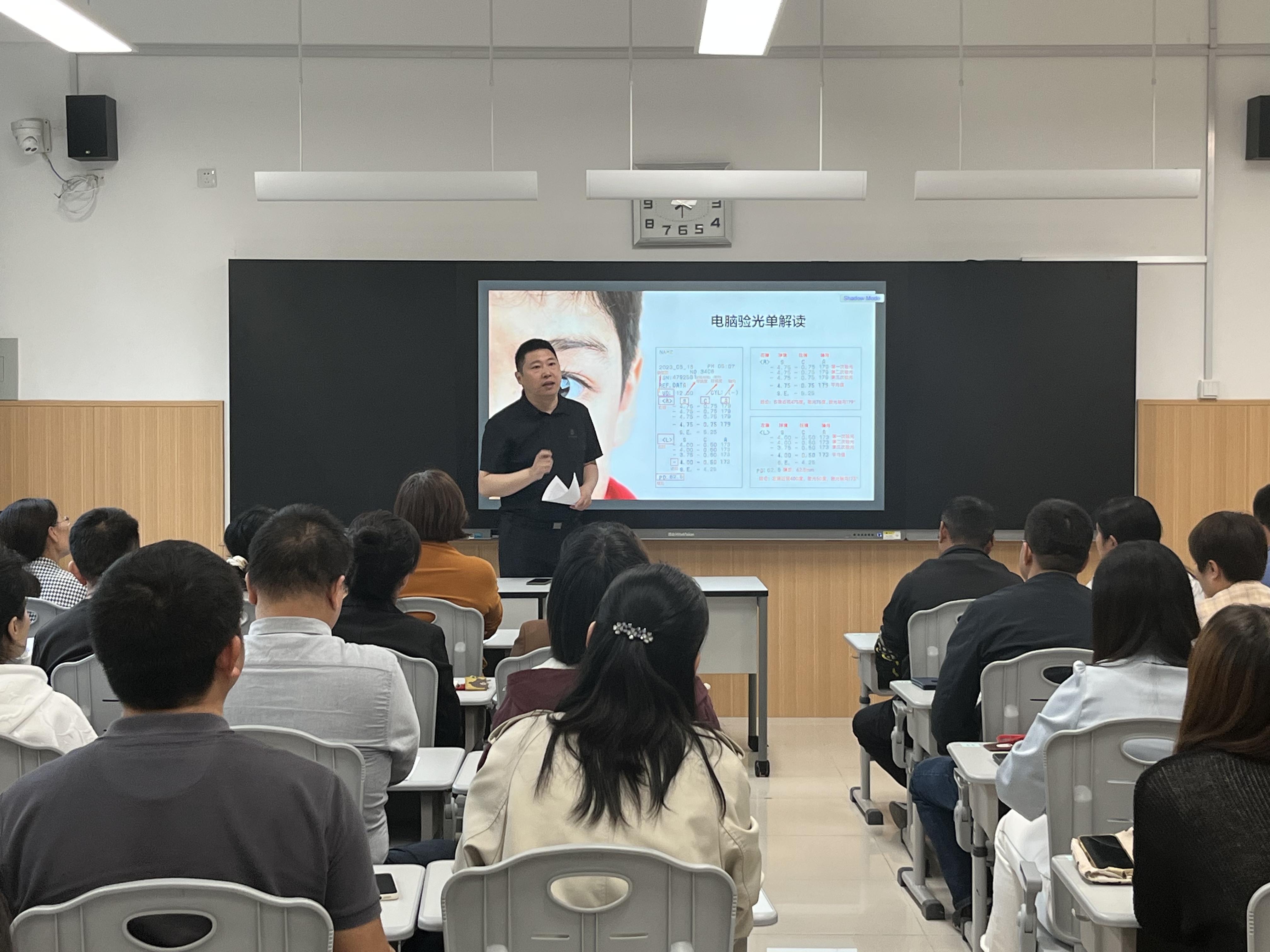 眼五科(眼肌病、儿童眼病专业)主任、副主任医师傅特带领“护瞳行动”志愿服务队,走进济南市外国语学校开展新学期“护瞳家长课堂”,就前期入校筛查结果向50余名一年级学生家长进行了反馈及总结,并向他们普及了儿童近视防控相关知识。
