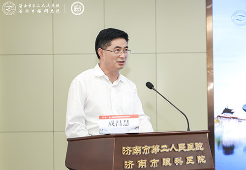 市卫健委二级巡视员成昌慧在讲话中充分肯定了济南市眼科联盟成立以来所做的工作,对联盟今后的发展提出了期许。他要求,一要进一步强化眼科联盟的组织领导,以联盟牵头单位为主体,积极推进眼科学专科建设,着力提升我市眼病的综合救治能力;二要继续强化眼科联盟的高质量发展,充分发挥眼科医院优势专科的辐射引导和带动作用,逐步形成资源下沉共享机制,建立上下贯通的分级诊疗服务体系;三要不断强化眼科联盟架构管理,在联盟章程的框架下,发挥多中心、大数据的积极作用,强化医疗质量管理工作,提升医疗服务同质化水平。在打造“康养济南”事业中发挥更加重要的作用,为加快建设“强新优富美高”新时代社会主义现代化强省会作出积极贡献。