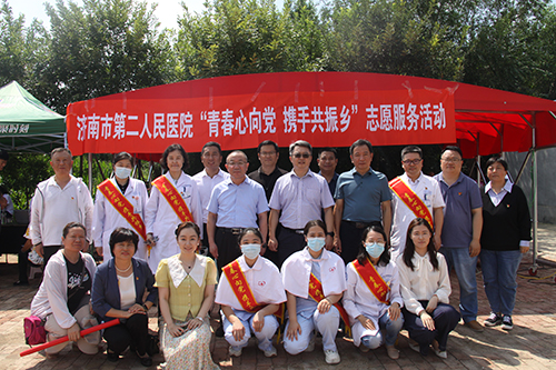 仪式结束后,在市二院派驻“第一书记”姚辉所在的龙桑寺镇大毕家村组织开展了系列活动。在“爱心助学”活动中,医院医技党支部与大毕家村贫困学生家庭结对,捐赠了助学金、书籍和学习用品。在“青春心向党 携手共振乡”志愿服务义诊活动中,市全民健身中心和医院团委组织专家,为当地患者现场答疑解惑,提供体质监测服务,传授爱眼护眼健康知识,共接诊群众100余人次。