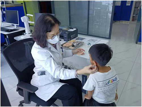 中医眼科副主任宿艳为小朋友进行耳穴压豆