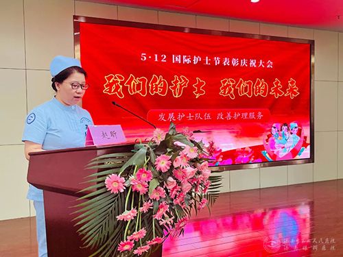优秀护士代表赵昕上台发言,她表示将继续不忘初心、坚定信念、砥砺前行,把自己的每一滴汗水都融入医院发展之中,与医院共成长、同进步。