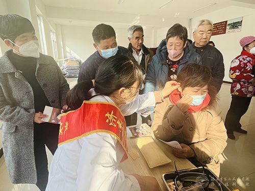 早上6点,市二院的医护人员们已从医院出发赶往莱芜区高庄街道槲林前村。两个小时的路途顺利到达目的地,此时已有居民等候在活动现场,医护人员没有作片刻休息,就投入到了义诊工作中。