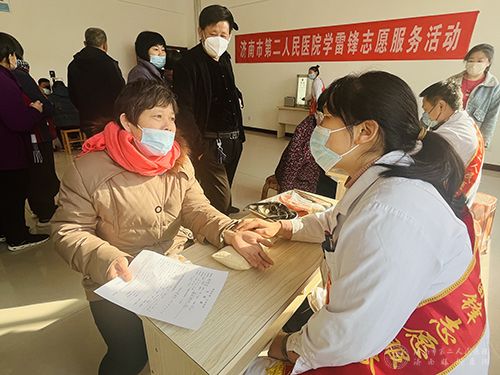 内科嵇高德主任为居民听诊、量血压,仔细地询问着身体情况,居民刘奶奶说:“最近头不太舒服,看到医生来了就来看一下,医生很有耐心,给我一量血压还挺高呢,回去赶快把降压药吃上。”
