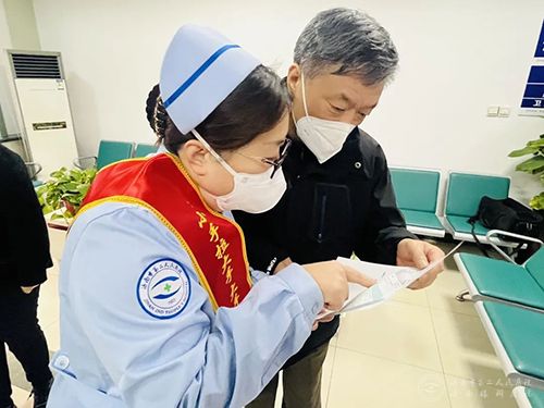 志愿者为老党员讲解体检流程