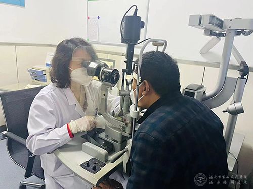 护理人员为患者进行干眼检查