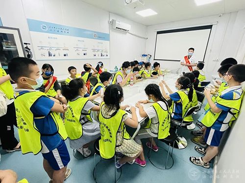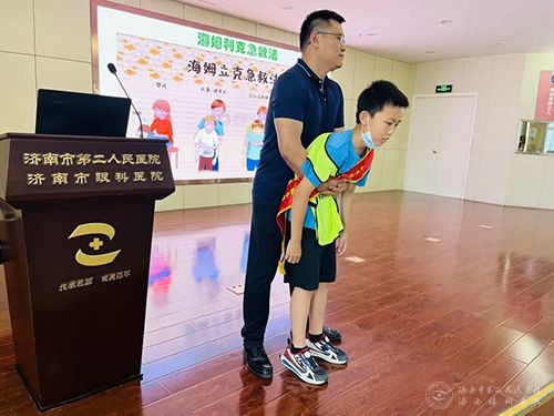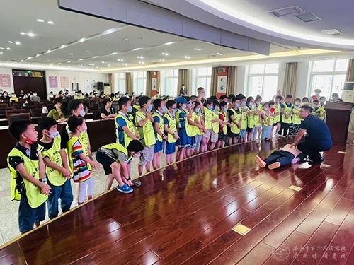 针对中小学生特点,在如何预防溺水事故、如何正确自救、如何有效开展救援等进行教学,并针对心肺复苏、海姆立克急救法的具体操作进行现场演练,多名学生代表在医生的指导下完成了标准的心肺复苏急救动作。