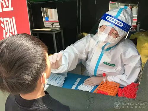 市二院支援商河核酸检测队于2022年4月4日凌晨成立,当天即奔赴商河许商街道开展支援任务。在为期20余天的任务期间,共完成12.8万人次的核酸采样工作。