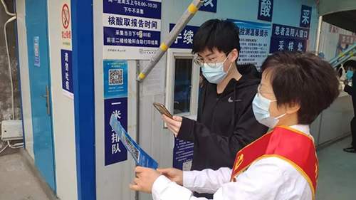 志愿者指导患者扫场所码