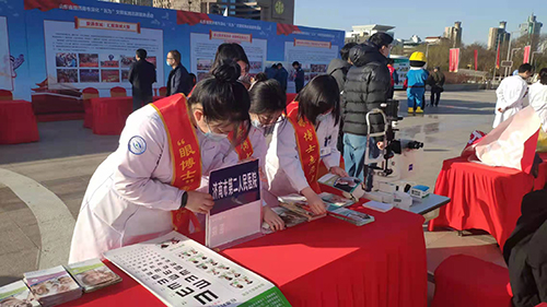 当天一大早,市二院“眼博士”志愿服务队的5名志愿者就来到现场做好了准备工作。活动中,他们为市民解答眼科常见问题、积极宣传眼病防控知识并赠送了标准视力表。活动期间,开展问诊及宣教50余人次,发放宣传资料110余份。本次活动恰逢“世界青光眼周”,为此,志愿者们还专门就青光眼防治等有关知识向市民进行了科普宣教。前来咨询的群众络绎不绝,现场气氛热烈,志愿者们优质的服务不仅赢得了群众的高度认可,还吸引了多家媒体前来拍摄。