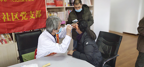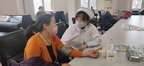 门诊社区党支部组织志愿者来到槐荫区发祥巷社区开展“党员双报到”冬日义诊活动。