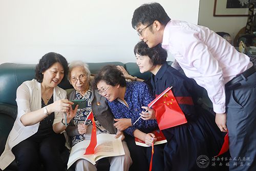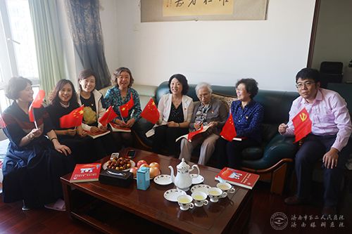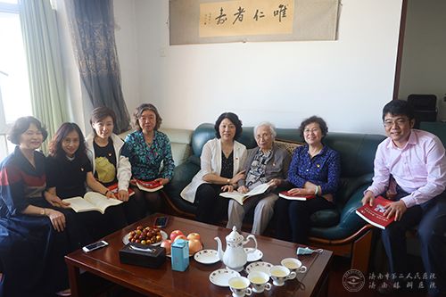党委书记吕丽萍一行来到医院原眼科主任陈智慧家中,亲切看望慰问老党员、老专家,并亲手将《巾帼心向党·建功强省会济南市卫生健康系统最美女性故事选编》一书送到了老人手中。