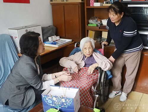 离退休职工管理科联合巾帼文明岗开展了“关爱空巢老人”志愿服务活动。10月14日一大早,院党委书记吕丽萍带领志愿服务队一行5人来到市二院原眼科主任、离休干部关瑞卿家中,为这位93岁的空巢老人送去了温暖又贴心的服务。