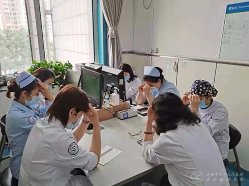 培训课上,中医眼科主任、副主任医师宿艳向受训人员介绍了眼保健操预防近视、缓解视疲劳的作用机制,并详细讲解了眼保健操穴位位置、按摩手法以及新版眼保健操的动作要领。