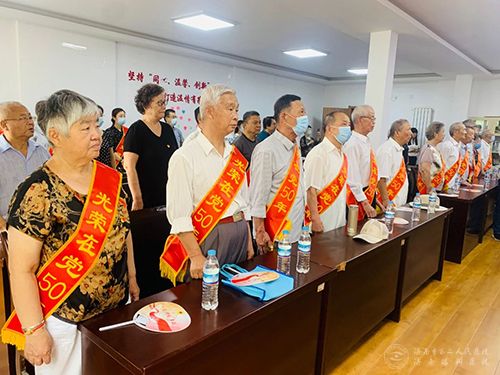 活动在一首悠扬深情的《不忘初心》歌曲中拉开帷幕,12名辖区老党员代表被授予“光荣在党50年”纪念章。