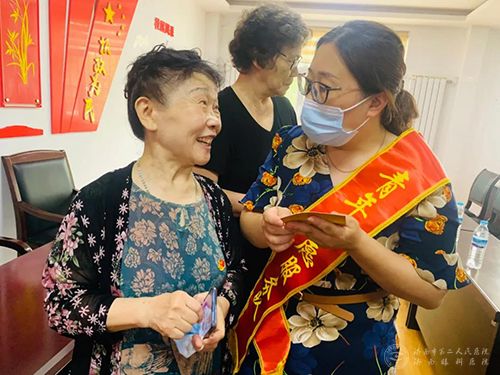 结对活动结束后,各位老党员同志与青年文明号亲切沟通自己的详细情况,回顾自己的入党经历,分享自己的心路历程。“远亲不如近邻,有你们想着我们,念着我们,我们的生活比蜜甜。”说话的是高广荣,她是发祥巷社区离退休干部党支部书记,在多年的工作中,她不顾个人困难,紧密结合辖区老党员的实际,坚持凝聚人心保稳定,落实政策不走样,积极引导老同志从家中走出来、学起来、动起来、乐起来。黄凤丽紧紧地牵着志愿者的手说到:“今天我很激动,因为我多了一个女儿。”黄凤丽是社区出名的好军嫂,四十多年来,她始终把满腔热情化作对国防事业的支持,对家庭的爱。市二院青年文明号的负责人们纷纷表示,要向老党员看齐,继承光荣革命传统,做到不忘来时路、薪火永相传,今后一定发挥好专业特色,为老党员们的身体健康保驾护航!