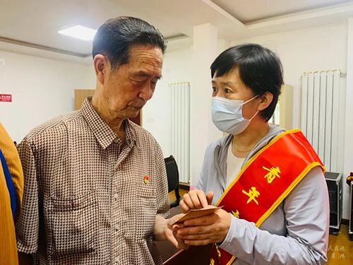 志愿者为结对老党员讲解联系卡用处