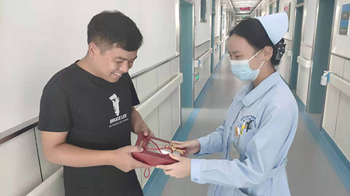 眼外伤科护士长杨娜娜为“老父亲们”送上节日礼物