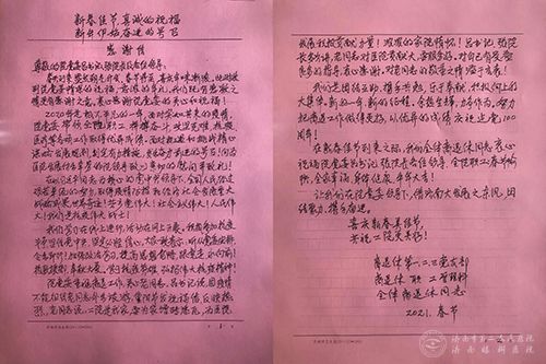 除线上拜年外,离退休第一党支部书记谢芳福代表离退休党支部和全体老同志,向院党委送来了题为《新春佳节真诚的祝福,新年伊始奋进的号召》的感谢信。信中对医院老干部工作予以充分肯定,衷心感谢院党委对离退休老同志的关怀与慰问。老党员们通过感谢信表达了对党的真挚感情,抒发了浓浓的家院情怀。最后,他们在信中向全体干部职工送上了美好的新春祝福,共同祝愿二院明天更加美好!(离退休职工管理科 王胜男)