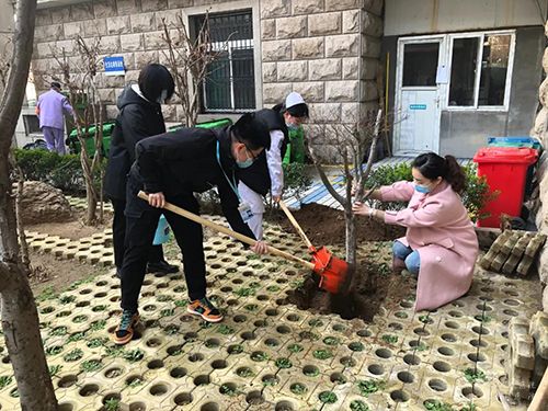 一大早,大家准备好铁锹、锄头、水桶,齐心协力地将一棵充满生机和希望的树苗植入土里。扶正树苗、挥锹铲土、填平树坑、踩实新土……各个环节衔接有序,配合默契,一起挥洒汗水播种绿树,为繁花似锦的春天增添了一份新绿,为市二院栽下一棵新树,种下一份新的希望。