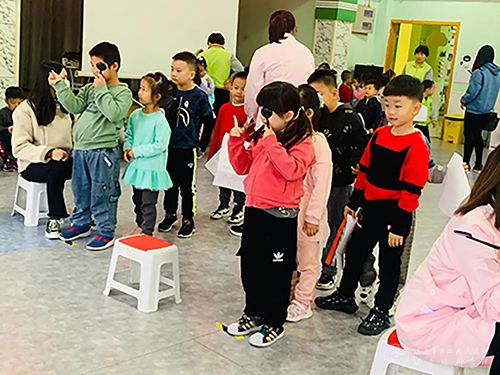 小朋友排队检查视力