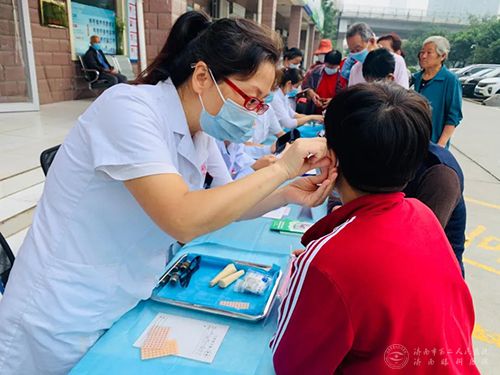 活动现场,来自市二院眼科、中医眼科、内科、外科的多位专家现场为市民答疑解惑,并利用裂隙灯、眼底镜、血压计等检查设备,为市民们提供专业检查。中医眼科的医师还根据居民的健康诊断情况,进行了耳穴压豆。与此同时,志愿者们还现场为市民检查视力、测量血压,发放科普宣传册等。