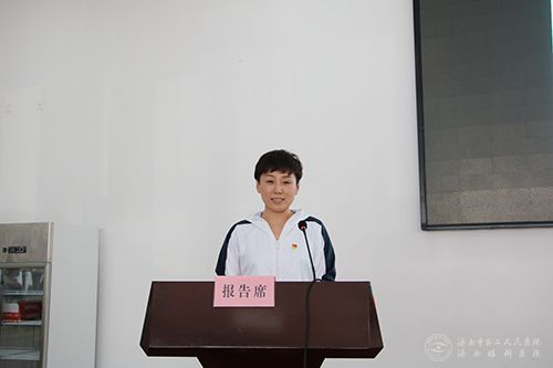 会上,山东省第四批援鄂医疗队队员李林峻做了精彩的报告,她用朴实无华的语言生动讲述了疫情期间的感人事迹,用一张张抗疫工作现场照片,带领大家重温了抗疫情景和感人瞬间。每一个动人的故事、每一个震撼人心的画面,都体现着医者仁心的大爱情怀。在场职工从她的身上感受到榜样的力量与温度,深情真挚的讲述深深打动了每一位听众,令许多人热泪盈眶,多次报以热烈的掌声。